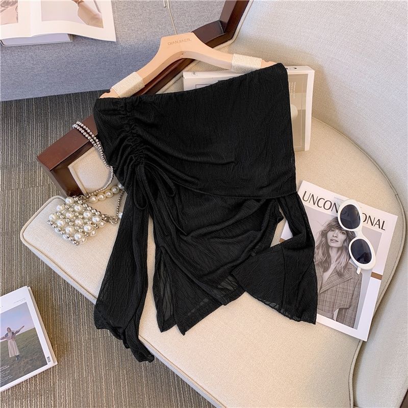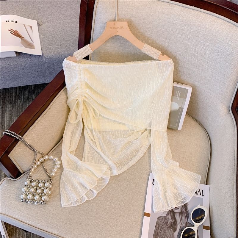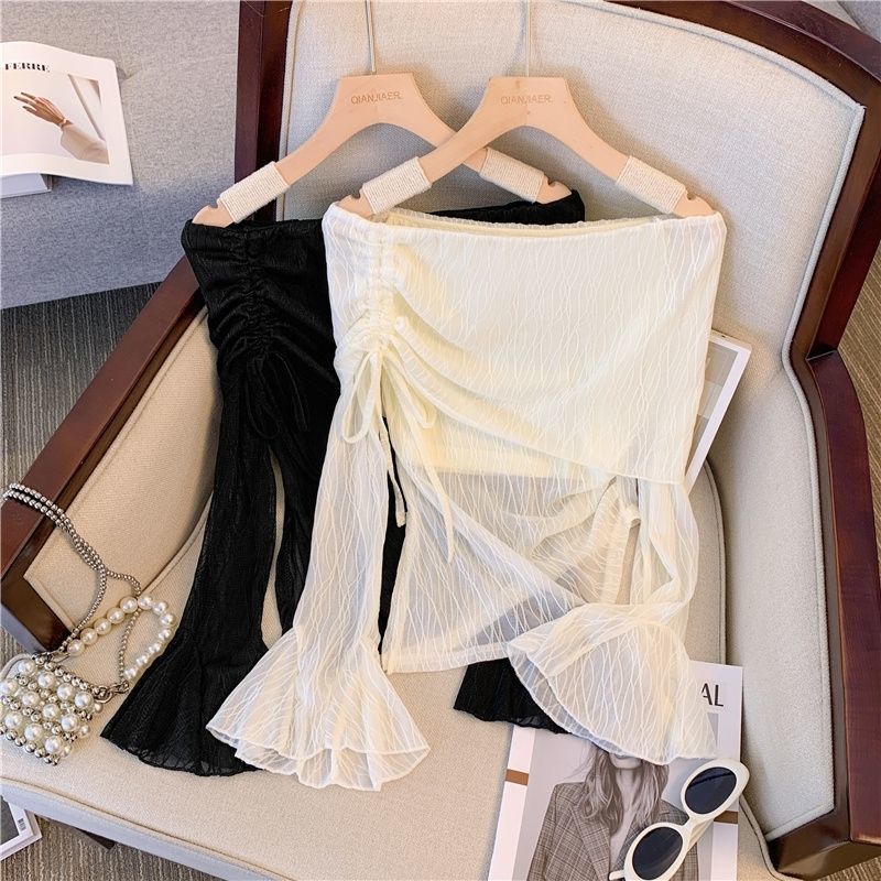 プリーツ加工された袖フリルが女性らしさを引き立て、一字肩の着こなしもお楽しみいただけます。