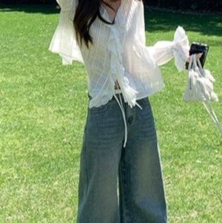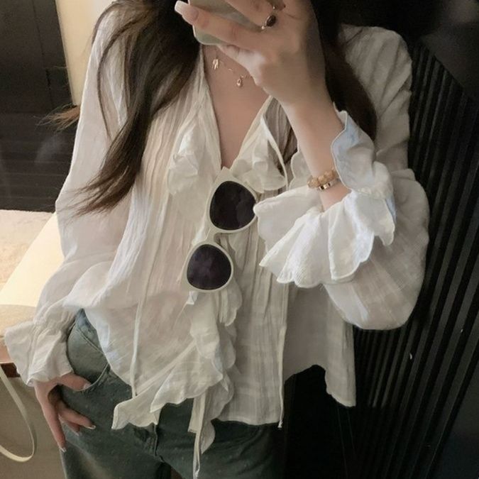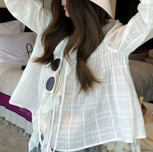 軽やかな透け感素材が魅力のフリルブラウスです。