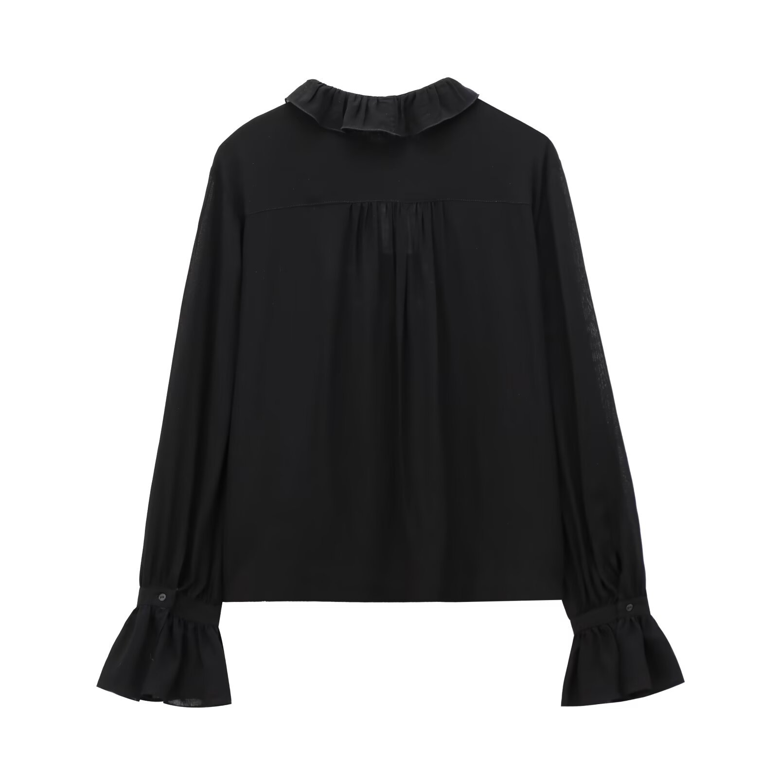 袖口のフリルディテールが女性らしさを引き立て、どんなボトムスとも相性抜群です。