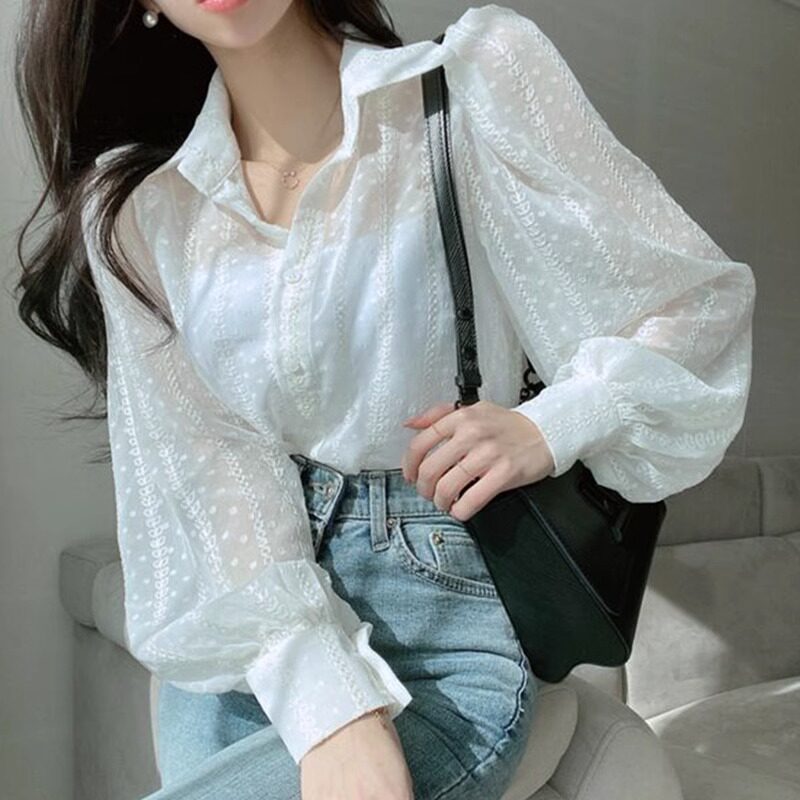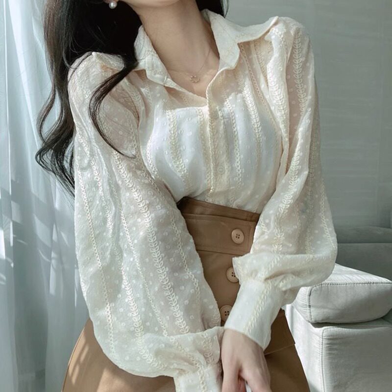 ふんわりとしたバルーン袖が女性らしさを引き立て、袖口のフリルがエレガントなアクセントになります。