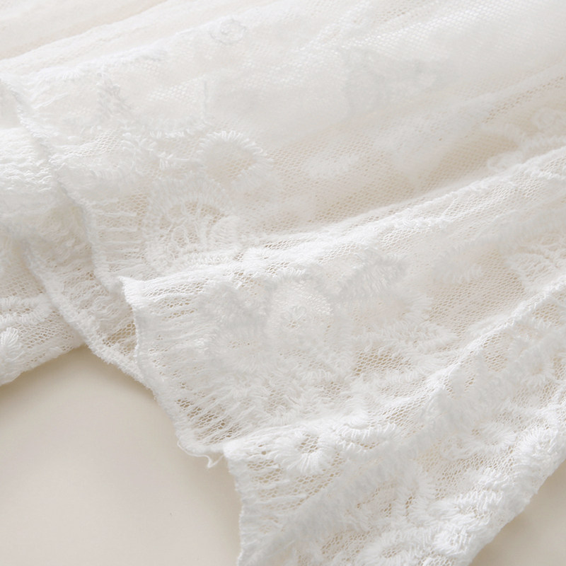 繊細な刺繍レースが全体を覆う上品なフリルブラウスです。