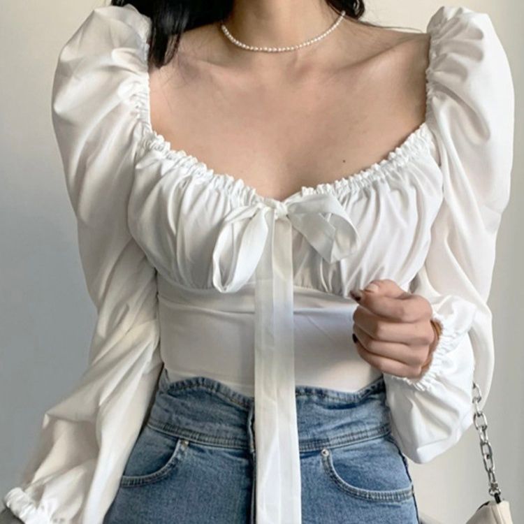 胸元のギャザーとリボンが可憐な印象を演出するフリルブラウスです。 胸元 フリルのデザインが女性らしさを際立たせ、ふんわりとしたパフスリーブが華やかさをプラスします。 前面のリボン結びがアクセントになり、甘さと上品さを兼ね備えた一枚です。 デニムと合わせてカジュアルにも、スカートと合わせてエレガントにも着こなせる万能アイテムです。 デイリーからお出かけまで幅広いシーンで活躍します。